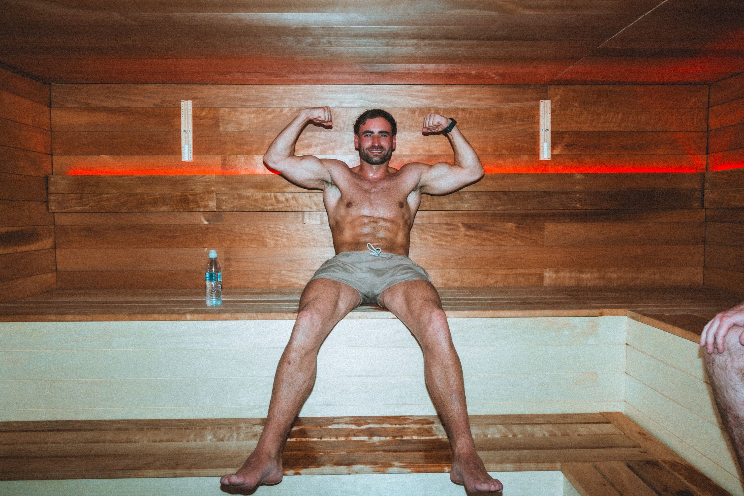 Finnish dry heat to raise core temperature and relax muscles.
